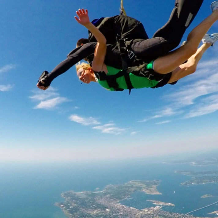 Jumping out of a plane at 10,000 feet (in a dress) in Newport, RI...